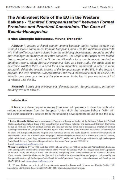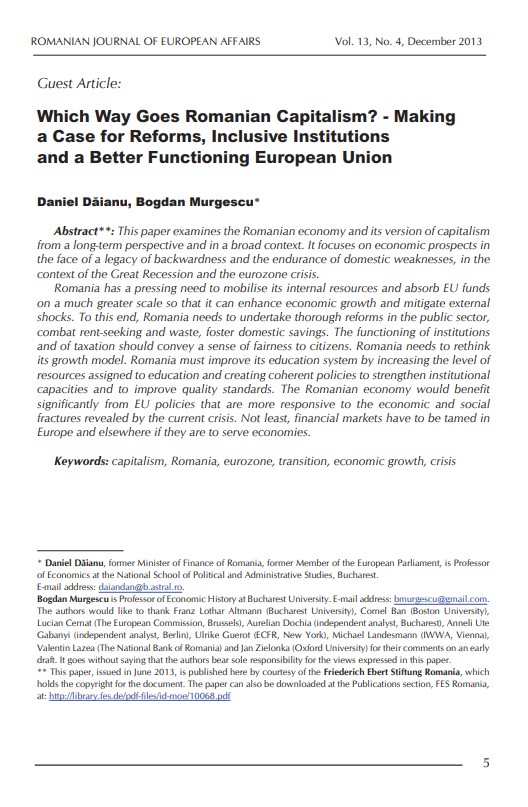 Item Regaining financial stability : taming financial markets is a must - a focus on NMSs(Institute for Economic Forecasting, 2011-06) Dăianu, DanielThe need for a radical overhaul of the regulation and supervision of financial markets has been acknowledged in all advanced economies. And yet, there still is a line ofreasoning which argues that the main source of the current financial crisis is the cheap money of the past, which would have caused large global imbalances as well.But another, that I share, is that something wrong has been occurring with overall financial intermediation in recent decades. This is like saying that structure has been no less important in derailing economies than misconceived policies and unavoidable cyclical dynamics. By structure we mean the configuration of rules and practices in the realm of regulation and supervision, on one hand; and the evolution and practices of financial institutions, including securitization and the growth of the so-called shadow banking sector (which has escaped regulations), on the other hand. Structure has, arguably, influenced policies in view of the relative neglect of systemic risks and the almost blind belief, by some, in the self-regulatory virtues and clairvoyance of financial markets. For a long time financial stability was relegated, de facto, to a second tier policy priority – especially in advanced economies. The current crisis has brought this concern back, with vengeance, and relates it to structure. The “great moderation” reveals itself as a “great misperception” period, which compels a rethinking of regulations and practices, of monetary policy itself (of inflation targeting, too), of the linkages between various domains of economic policy. Nothing seems to be certain any longer, in an increasingly stochastic world. Just think about the huge difference between how Spain and Ireland were judged before and after the eruption of this crisis – with a sharp deterioration of public finances and drastic economic downturn.Item The Role Of The European Union In The Wider Black Sea Region(Turkish Policy Quarterly, 2011-09) Aurescu, BogdanThe article deals mainly with the importance of EU involvement in the wider Black Sea region, the main European policies and initiatives related to this region (the Black Sea Synergy, the European Neighborhood Policy, the Eastern Partnership, the EU Strategy for the Danube region), as well as regional initiatives and priorities in the fields of energy and security. Regional cooperation issues are also approached from a bilateral perspective: the role played in this strategically important area by Romania -gate of the region to the EU and Turkey- gate of the region to the rest of the world.Item Book review : Theorizing medieval geopolitics: war and world order in the age of the Crusades(Routledge, 2012) Miroiu, AndreiInternational Relations (IR) scholars' interest in medieval politics varies between enthusiasm and neglect. After a serious debate between neorealists, Marxists and constructivists in the 1990s, a relative silence fell on the subject. The victory of constructivists, who argued that the medieval state—if such entity even existed—was an altogether different polity from its modern incarnation and therefore not really interesting for understanding contemporary processes, seemed definitive. In this climate, Andrew Latham's thesis in Theorizing medieval geopolitics comes as a necessary and interesting reinterpretation aimed at restarting the debate and at introducing new questions and avenues for research.Item Tax Policy under the Curse of Low Revenues: The Case of Romania (Part I)(Institute for Economic Forecasting, 2012-03) Dăianu, Daniel; Kallai, Ella; Lungu, LaurianThe Romanian tax revenue-to-GDP ratio has been far below the average level of both the European Union and the New Member States for many years. The decade long growth cycle hid significant structural imbalances in the public budget. This paper attempts to identify reasons why tax revenues in Romania are the lowest among the EU-27 countries. It takes a broader perspective by looking at the main sources of tax revenues over the last two decades. Implications of the policy regime change following the introduction of flat tax in 2005 are considered. It also does a few comparisons with other countries from Central and Eastern Europe by looking at the main tax revenue components.Item The ambivalent role of the EU in the Western Balkans - "limited europeanisation" between formal promises and practical constraints : the case of Bosnia-Herzegovina(Institutul European din România (IER),, 2012-03) Bărbulescu, Iordan Gheorghe; Butnaru Troncotă, MirunaIt became a shared opinion among European policy-makers to state that without a serious commitment from the European Union (EU), the Western Balkans (WB) will find itself increasingly isolated from the unfolding developments around it and this may endanger the stability of the entire continent. The scope of this paper is two folded: first, to examine the role of the EU in the WB with a focus on democratic institution-building; second, taking Bosnia-Herzegovina (BiH) as a case study, the article aims to determine whether there is a need for a new theoretical framework in order to more accurately define the specific process of the Europeanisation in the WB. In this regard it proposes the term "limited Europeanisation". The main theoretical aim of the article is to identify some clear-cut criteria of this phenomenon in the last 14-year evolution of BiH in relation with the EU.Item European Union a polity in search of a mission?(Ecozone Publishing House, 2012-04-22) Ungureanu, Radu-SebastianThe unique features of the European Union generate permanent political and theoretical debates; the fact is unsurprising, since simply describing this entity is a challenge. Despite the impressive literature on the topic, there is no widely recognized understanding of EU‟s nature as a